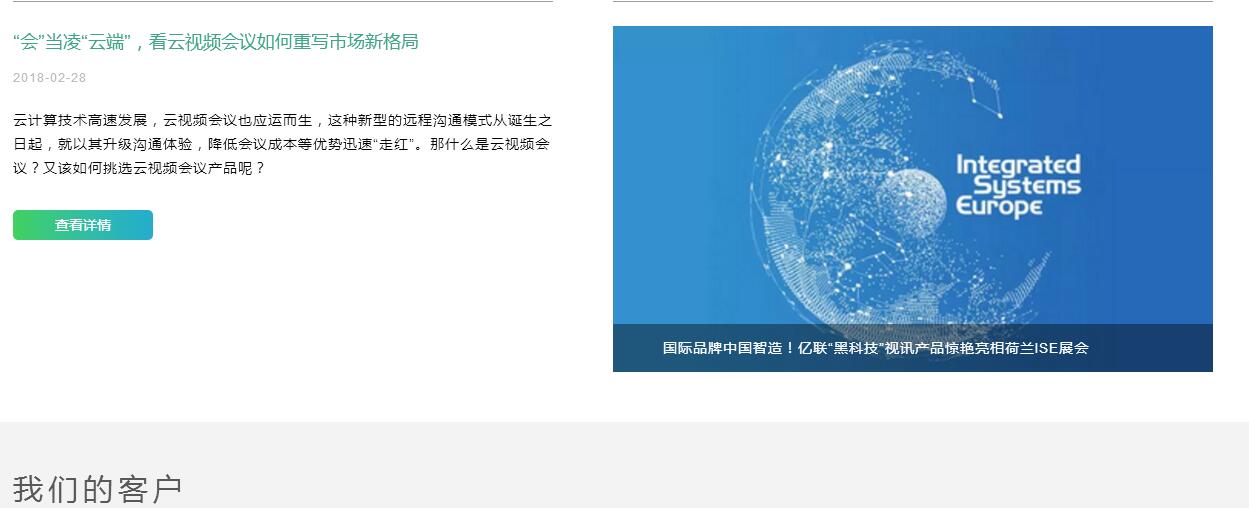 Project Description 厦门亿联网络技术股份有限公司(股票代码:300628)成立于2001年,是全球领先的统一通信解决方案提供商,主营视频会议和语音通信方案,坚持自主研发创新,致力于使沟通更简单、更高效。亿联网络在全球100多个国家提供音视频与协作等高品质网络通信产品,协助用户提升办公效率和竞争力。亿联网络SIP话机市场占有率为中国第一、全球第二。 Official website address 楚雄http://www.yealink.com.cn I want to share