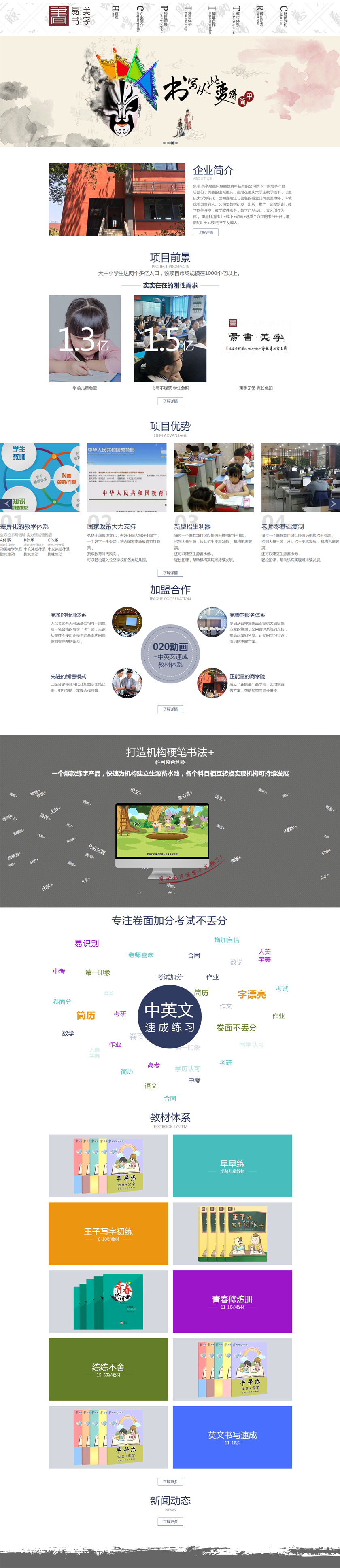 Project Description 易书.美字练字是重庆慧墨教育科技有限公司旗下一款写字产品,总部位于美丽的山城重庆,坐落 在重庆大学主教学楼下,以重庆大学为依托,面朝嘉陵江与著名的磁器口风景区为邻,环境优美 风景宜人。公司集教材研发,出版,推广,师资培训,教学软件开发,教学软件服务,教学产品 设计,文艺创作为一体,重点打造线上+线下+动画+速成全方位的书写平台,覆盖5岁至50岁的学 ... Official website address 楚雄# I want to share